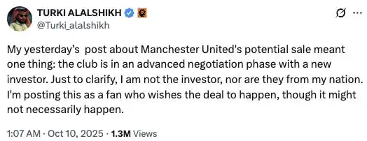 昨日笔者撰文提及,沙特知名投资人、现任沙特娱乐总局负责人Turki Alalshik存在参股曼联的可能性,英国媒体随即展开多维度报道,导致信息层面出现复杂化态势。